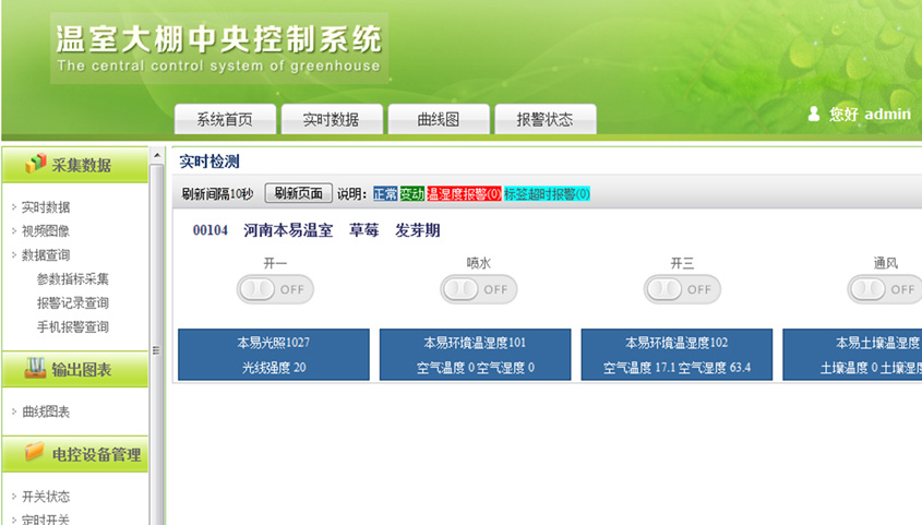 本系統(tǒng)采用RFID及物聯(lián)網(wǎng)技術建立核心體系架構,并以公共云計算模式為用戶提供大棚種植業(yè)務的全面信息服務及決策服務。實現(xiàn)全面監(jiān)測、智能分析、科學指導一體化的大棚應用服務平臺。項目通過實時采集并檢測溫室內的各項參數(shù)指標,從而實現(xiàn)智能化控制溫室內各電控設備的開關;同時通過設置安全閾值,實現(xiàn)了超出閾值的警報的功能。
