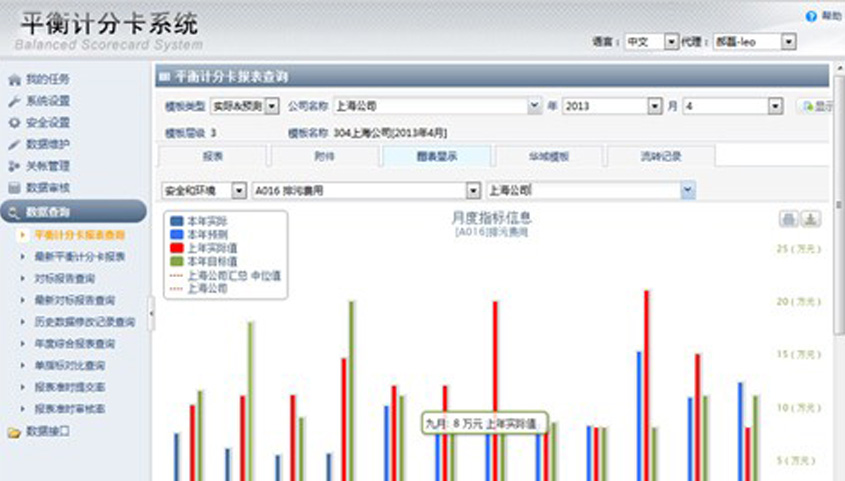系統(tǒng)實(shí)現(xiàn)了基于平衡積分卡理念的公司戰(zhàn)略層管理,將組織的戰(zhàn)略落實(shí)為可操作的衡量指標(biāo)和目標(biāo)值,并在系統(tǒng)中進(jìn)行預(yù)測、填報(bào)、審批和數(shù)據(jù)分析,用來與預(yù)期管理目標(biāo)進(jìn)行比對(duì),以便于獲取真實(shí)的目標(biāo)數(shù)據(jù)值來調(diào)節(jié)公司的戰(zhàn)略。